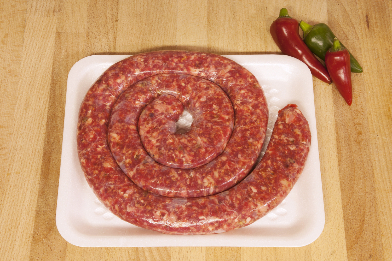 Our Peri-Peri Boerewors is made from coarsely minced British Beef and Lamb, flavoured with Traditional South African mixed herbs and spices. This mix is then filled into natural hogs casings. It is a rich, meaty and robust tasting sausage, guaranteed you'll be back for more!